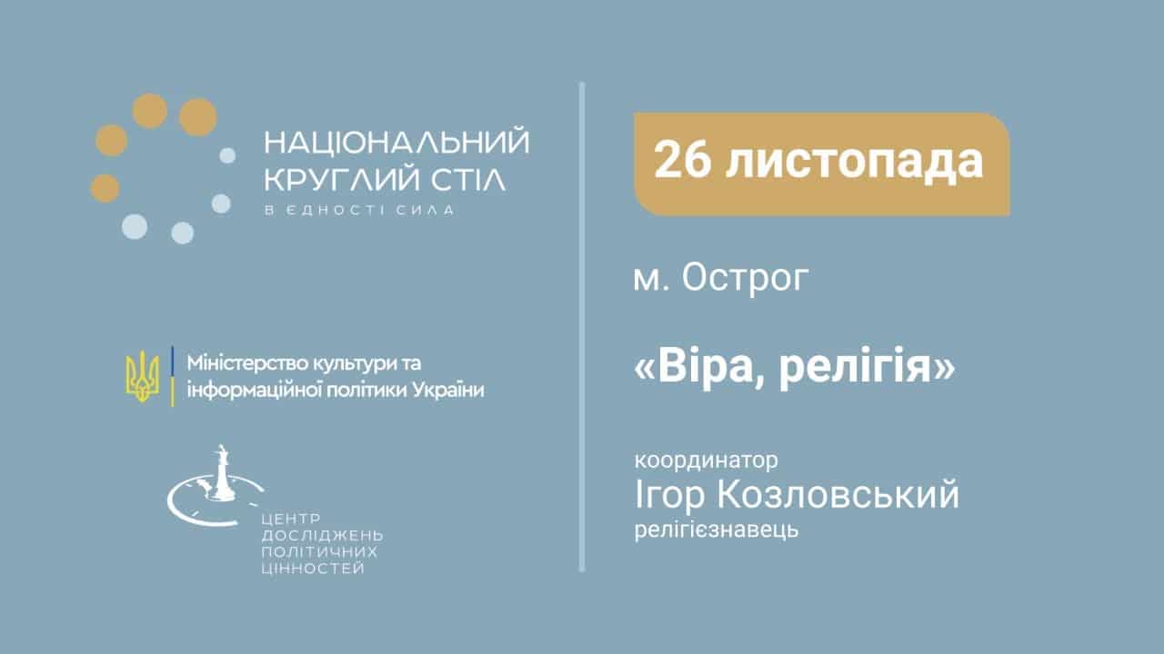 В Острозі 26 листопада 2020 року відбувся шостий Національний круглий стіл на тему «Віра. Релігія». Це проєкт спрямований на єднання нації та просування прогресивних світоглядних цінностей. Повідомляють Укрінформ та пресслужба Західноукраїнського національного університету.