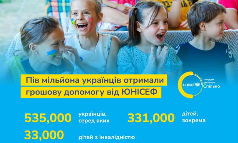 Дитячий фонд ООН (ЮНІСЕФ) в Україні протягом чотирьох місяців програми надав грошову допомогу 535 000 українців, серед яких 331 000 дітей, зокрема 33 000 дітей з інвалідністю.