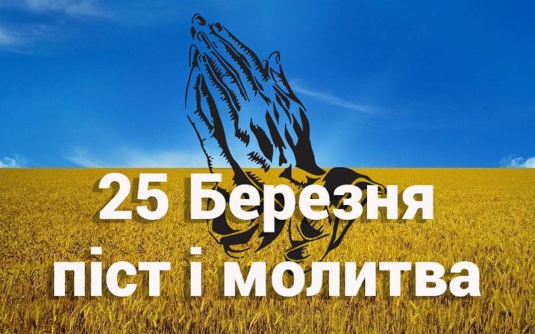 У зв’язку з карантином в Україні та введенням в окремих регіонах режиму надзвичайної ситуації з метою недопущення поширення коронавірусу Всеукраїнська Рада Церков і релігійних організацій оголосила 25 березня 2020 року Днем загальної молитви і посту за Україну.