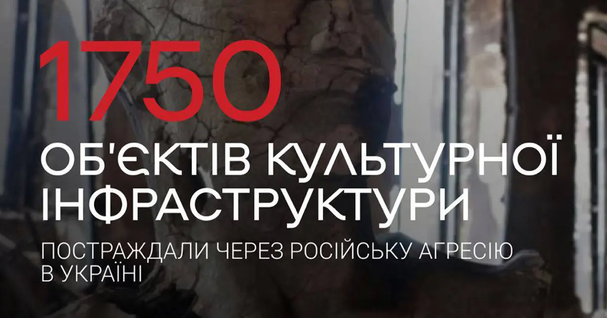 Внаслідок російської агресії в Україні зазнали значних пошкоджень 1750 об’єктів культурної інфраструктури