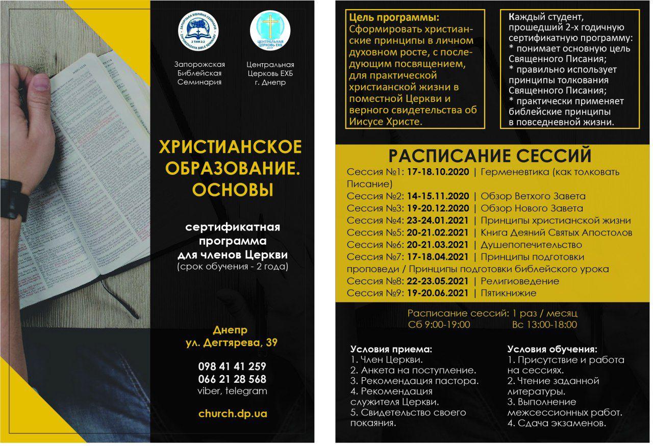 Детальна інформація: https://www.church.dp.ua/hristianskoe-obrazovanie-osnovy/