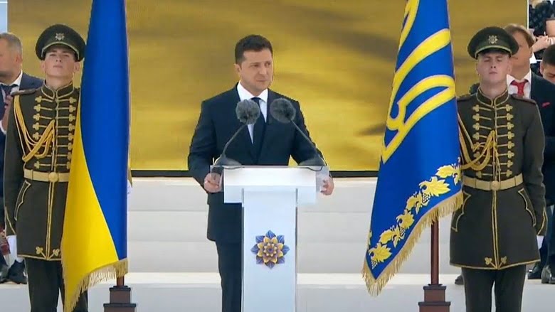 «Ми починаємо відзначати День Української державності. Її точкою відліку ми вважаємо рік заснування Києва – столиці Київської Русі-України, яке недаремно називають містом, де все починається», – заявив Зеленський під час виступу на параді з нагоди 30-річчя Незалежності України.